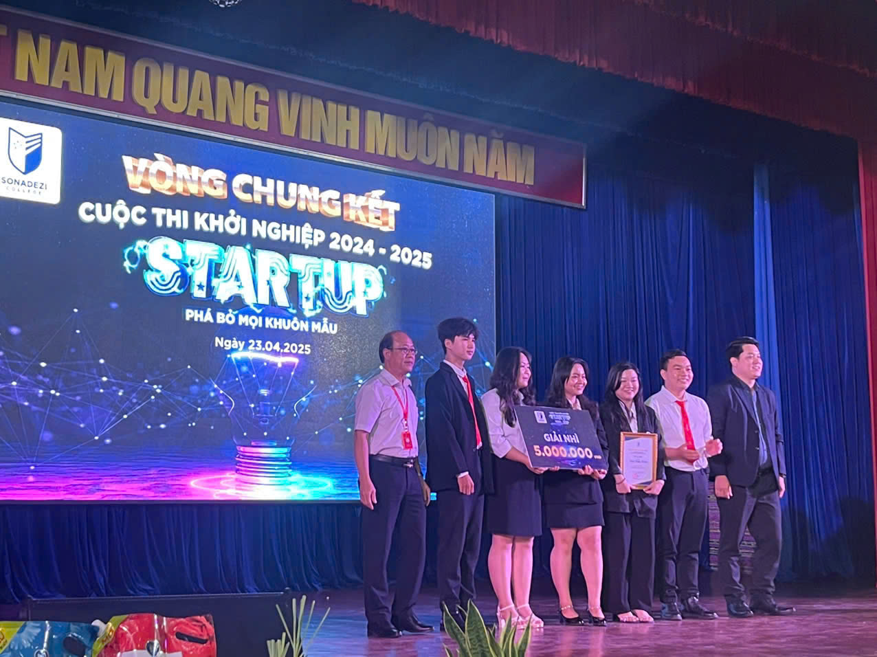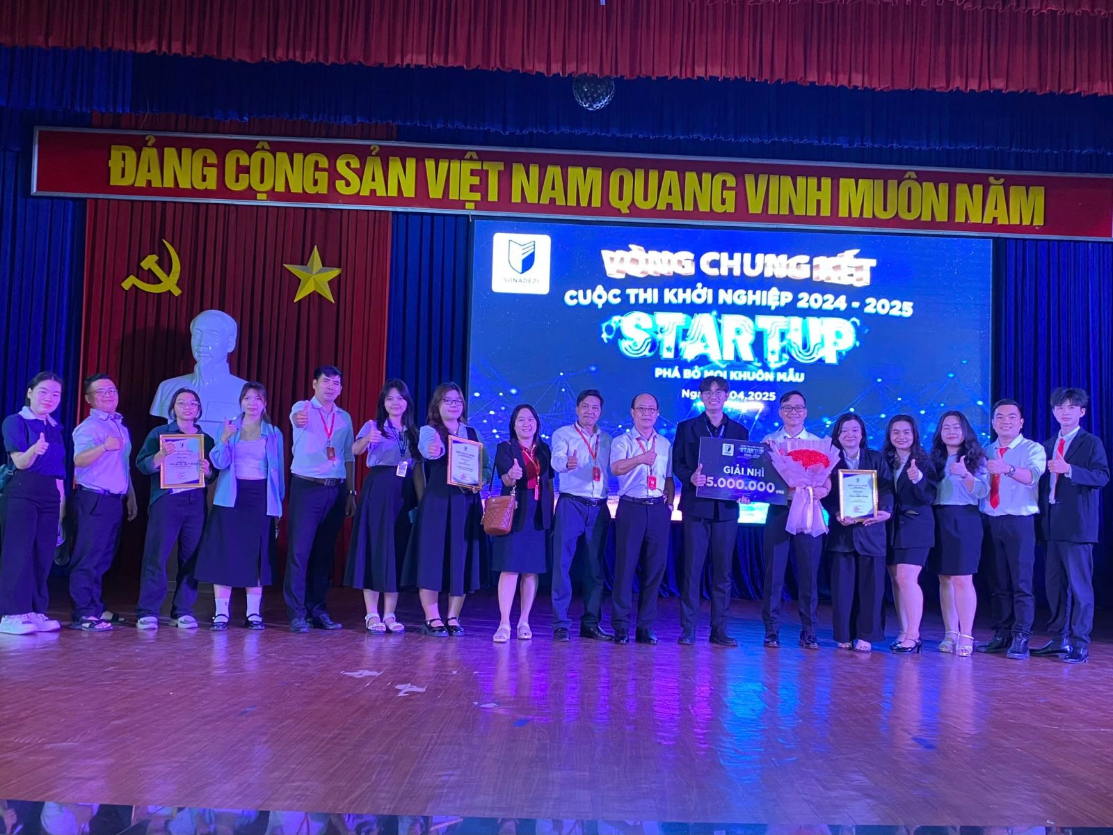 Sáng ngày 23/04/2025, tại Sonadezi College, chung kết Cuộc thi Khởi nghiệp 2025 đã diễn ra trong không khí sôi nổi và đầy cảm hứng. Hành trình "mang chuông đi đánh xứ người" của các bạn sinh viên Khoa Kinh tế - Quản trị đã trải qua ba vòng thi gay cấn, mỗi vòng đều đòi hỏi sự sáng tạo và quyết tâm cao độ.