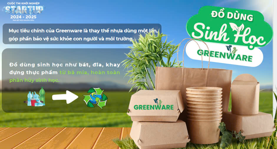 Giải Khuyến khích: Dự án Greenware – đầu tư sản xuất đồ dùng từ bã mía.