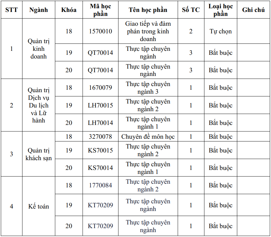 - Được xét chuyển điểm môn học trong chương trình đào tạo do Khoa chuyên môn đề xuất, phù hợp với nội dung học tập của sinh viên, học viên. Đối với học phần được xét chuyển điểm, sinh viên được miễn học phí. Cụ thể như sau: