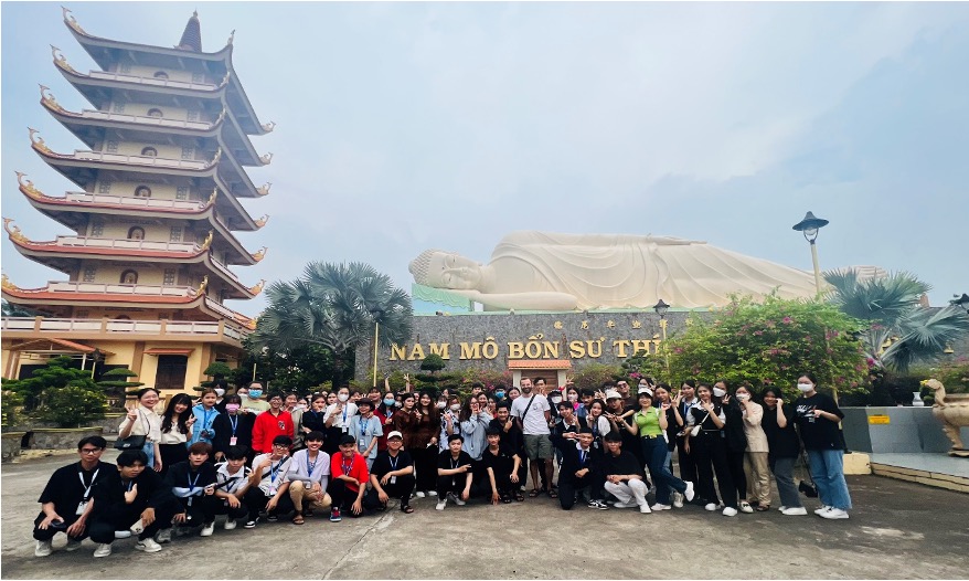 Hình ảnh sinh viên chụp hình lưu niệm tại chùa Vĩnh Tràng