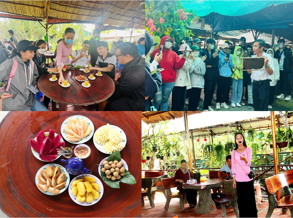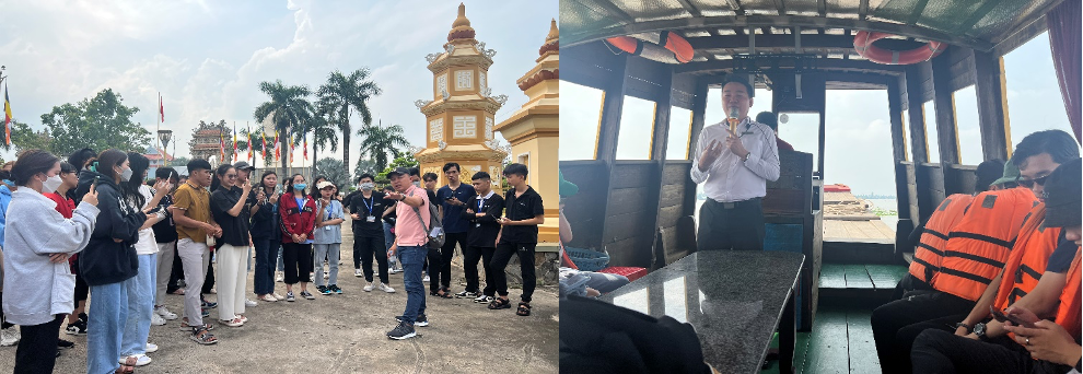 Sinh viên khối ngành Du lịch được trải nghiệm thực tế về tour - tuyến đường du lịch Biên Hoà - Tiền Giang - Bến Tre. Các bạn được thực hành với các nghiệp vụ của một hướng dẫn viên chuyên nghiệp về công tác chuẩn bị đón khách, trong khi đón khách, sau khi đón khách, các kỹ thuật thuyết minh trên xe, trên tàu, thuyết minh tại điểm du lịch, kỹ năng hoạt náo, tổ chức trò chơi,..v..v.. dưới sự chỉ dẫn tận tình của hướng dẫn viên quốc tế chuyên nghiệp.