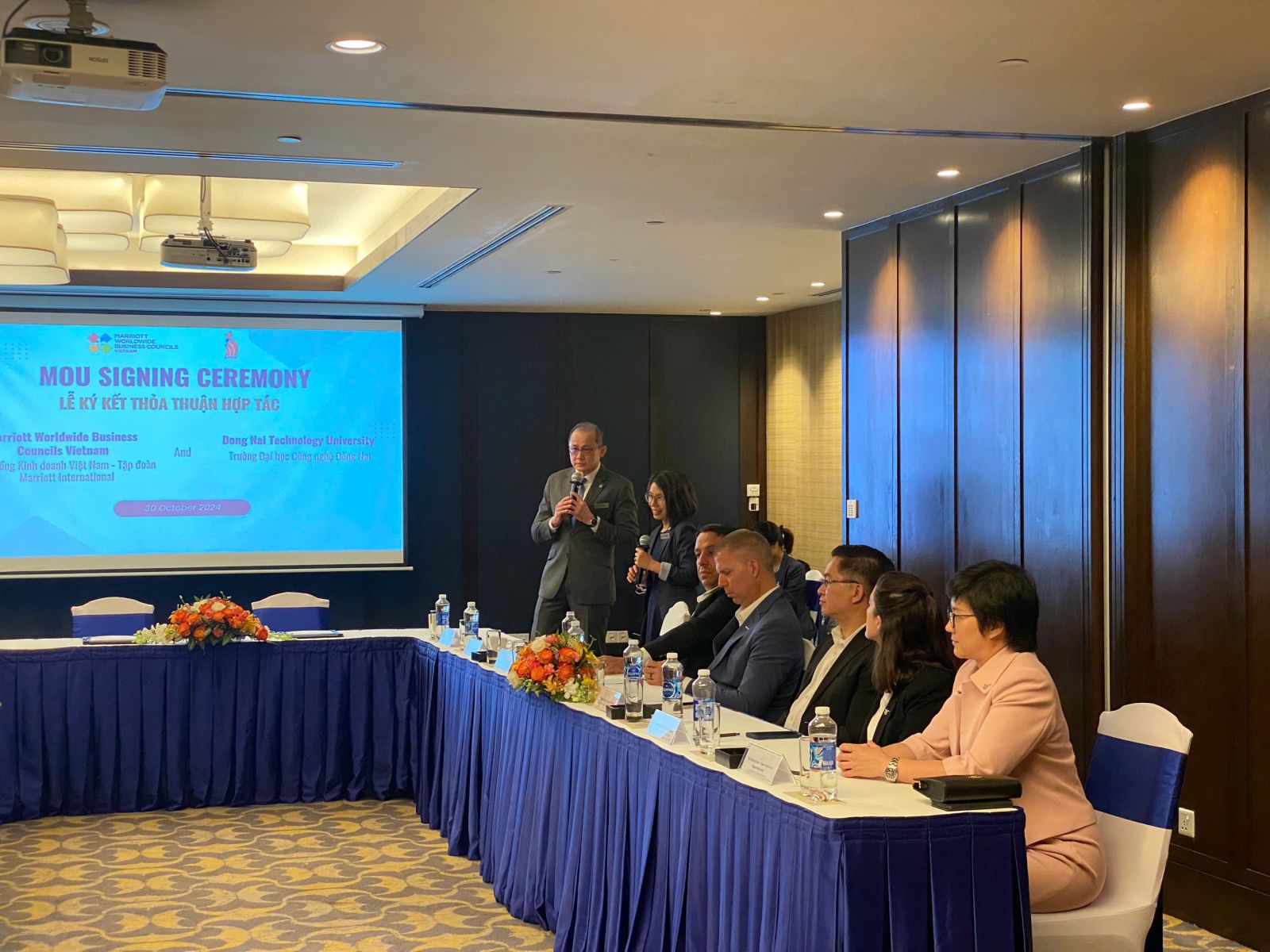 Buổi lễ ký kết, về phía Trường Đại học Công nghệ Đồng Nai gồm có Giám đốc Trung tâm Hợp tác Doanh nghiệp và cựu người học, Lãnh đạo Khoa và giảng viên Khoa Kinh tế - Quản trị tham dự. Về phía Hội đồng Kinh doanh Toàn cầu Marriott Việt Nam, có sự góp mặt các Tổng quản lý, các Trưởng phòng nhân sự và các trợ lý thuộc đại diện 7 khách sạn tiêu chuẩn quốc tế 5 sao đại diện các tỉnh phía nam của Việt Nam của Tập đoàn Marriot gồm: khách sạn Sheraton Saigon Grand Opera Hotel, Le Méridien, Renaissance Riverside Hotel Saigon, Vinpearl Landmark 81, Autograph Collection, Fairfield by Marriott South Binh Duong, JW Marriott Residences Grand Marina Saigon.
