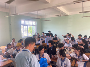 Bạn Nguyễn Thị Thúy Diệu, Bí thư lớp 19DLH1 đang làm hướng dẫn viên tại điểm tại Nông trại Cuộc Sống Xanh, xã Tân Hiệp, huyện Long Thành, Đồng Nai