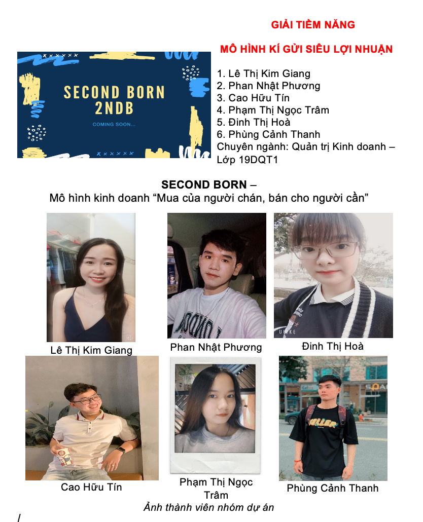 Giải tiềm năng: - Cửa hàng ĐTDĐ Hoa NamAn Khê tài trợ thiết kế app (7.000.000đ); - Cty TNHH TM SX Nội thất Quảng cáo Sao Băng Group tài trợ Gói thiết kế thương hiệu (3.000.000đ); - Khoá học khởi nghiệp thịnh vượng trị giá 2.500.000. |