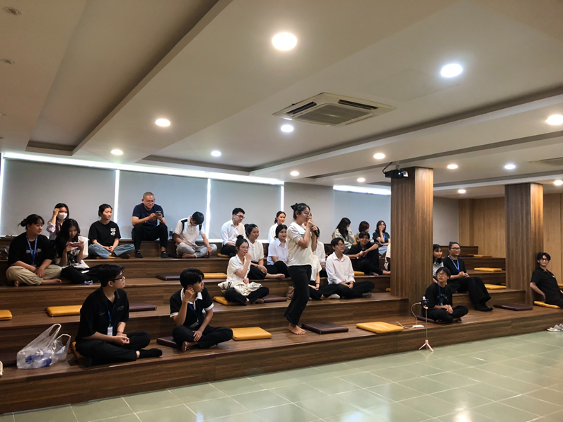 đang giao lưu với nhóm học sinh trường Phổ thông Nguyễn Khuyến