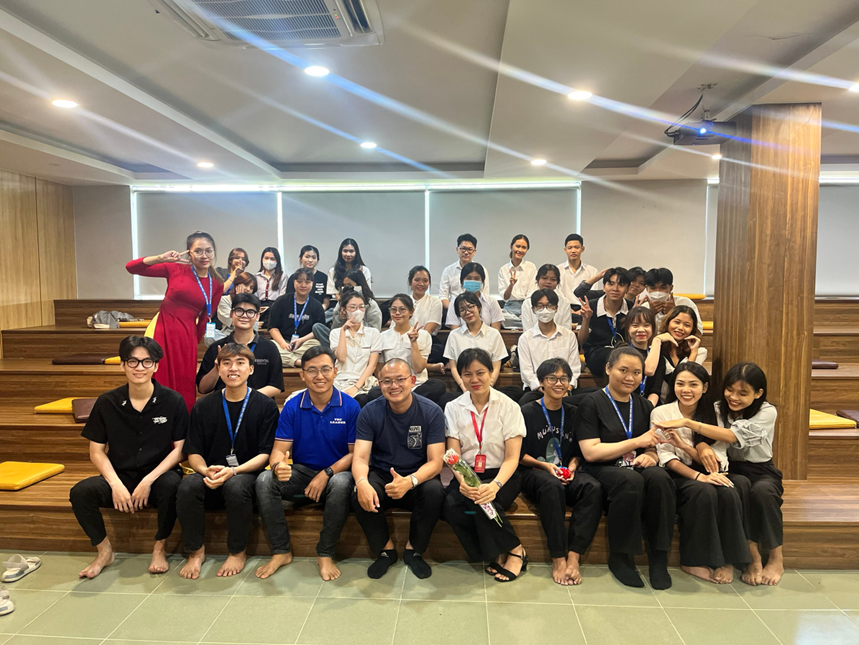 Để buổi Talkshow ngày hôm nay được diễn ra thuận lợi, phải kể đến sự hỗ trợ nhiệt tình của cô Nguyễn Ngọc Diệp, anh Bùi Tấn Kiệt và sự xuất hiện đầy bất ngờ của thầy Nguyễn Phước Thiện (GV bộ môn Quản trị, khoa Kinh tế - Quản trị, thầy cũng là một người có nhiều kinh nghiệm trong lĩnh vực outbound) đã dành thời gian quý báu của mình đến gặp gỡ, giao lưu và gỡ những nút thắt trong lòng của các bạn học sinh, sinh viên có niềm đam mê với ngành du lịch lâu nay.